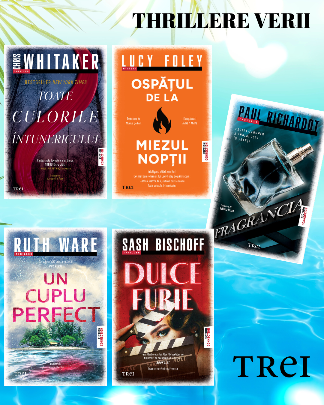 Iubitorii genului știu perfect că un thriller bun este ca o călătorie spre o destinație plină de mister. Iar când face parte din bagajul pentru vacanță, adaugă suspans și trăiri intense zilelor de vară. Cele mai noi apariții editoriale de la Editura Trei aduc în prim-plan scriitori consacrați și debuturi remarcabile, de la Ruth Ware și Lucy Foley, la surprinzătorul Paul Richardot, autorul unui thriller olfactiv surprinzător. Fiecare roman explorează o altă fațetă a suspansului – de la traumele adânc îngropate în psihic și misterele unui reality-show dintr-un loc izolat de lume, până la universul amintirilor evocate prin diverse arome – crima având propriul parfum. Iată 5 dintre cele mai interesante thrillere ale acestei veri.